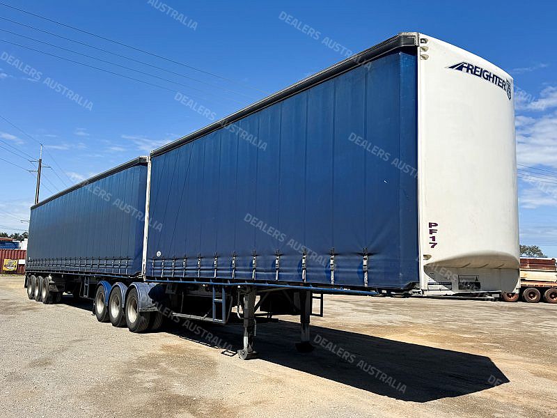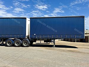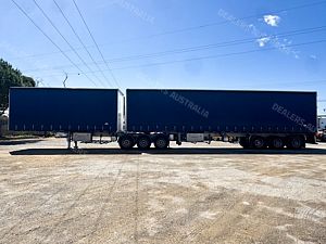 This 2021 Maxitrans ST3 Flat Deck B-Double Curtain Side Combination is currently listed for sale in a live online auction. The auction closes at 8:00pm AET this Thursday, 4th of December 2025 unless extended by late bids.
