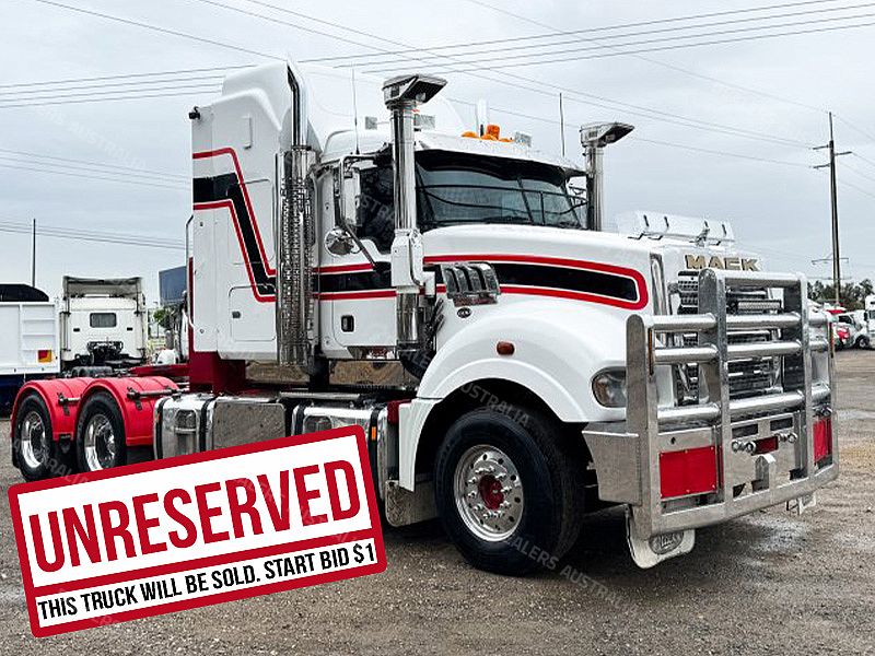 This **UNRESERVED** 2014 Mack Superliner 6x4 Prime Mover **131 TON RATED**ROAD TRAIN** is currently listed for sale in a live online auction. The auction closes at 8:00pm AET this Thursday, 4th of December 2025 unless extended by late bids.
