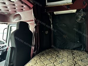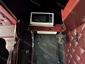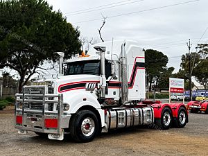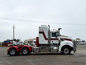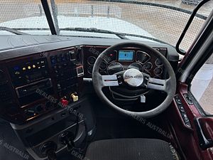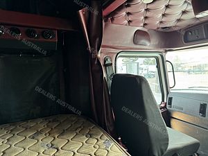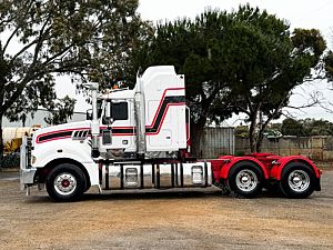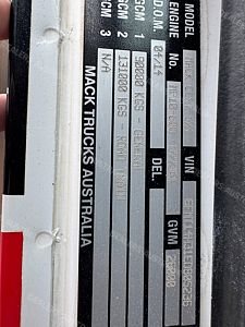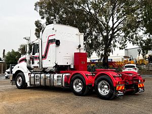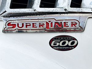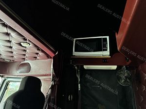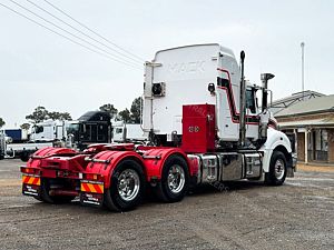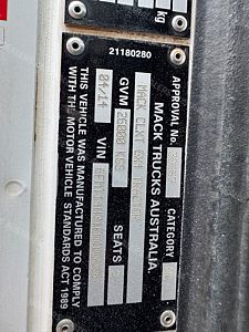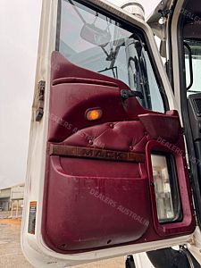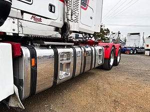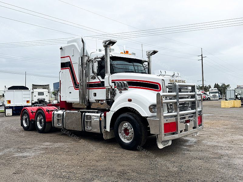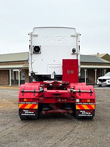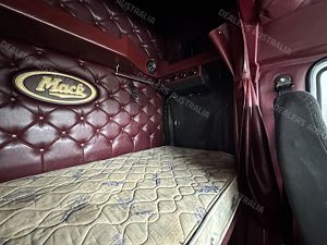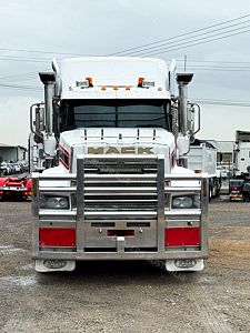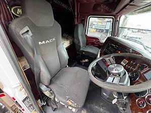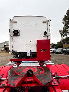 2014 Mack Superliner 6x4 Prime Mover, 600hp Mack MP10 Engine, ‘M’ Drive Automated Transmission, Dana 52/190D Rear Axles @ 3.91, Neway Airbag Suspension, Fixed Turntable, Toolboxes Behind Cab, Yard Dolly Pull at Rear with Air & Electrics, 10 Stud Alloy Rims with Super Singles to Steer, Polished Alloy Bullbar with Tow Pin and LED Light Bar, Dual Exhausts & Air Intakes, Mesh Stone Guard, Sun Visor, Square Tanks, Plastic Drive Guards, Radio / CD, Microwave, Wood Grain Impersonator Dash, Maroon Diamond Stud Trim, Air Ride Drivers Seat.