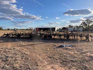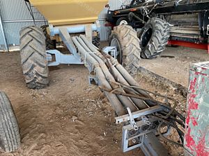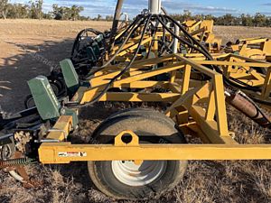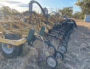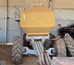 Gyral Ag-Boss Planter, trailing, 16 metre, 500mm tyne centres, spring tyne, narrow points, folding bar, manutec press wheel , Morris finger harrows(not fitted), Gyral 30-21STR Air Cart, quad cart, twin bin, 4 outlet, 2 metre wheel centres, steerable front axle, stored under cover, numerous spares, good condition, located near Collarenabri NSW, price includes GST