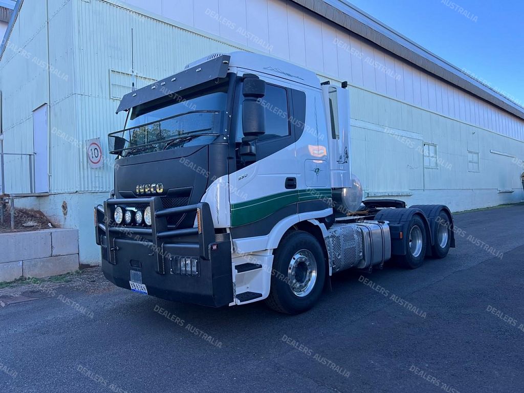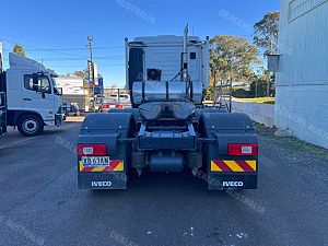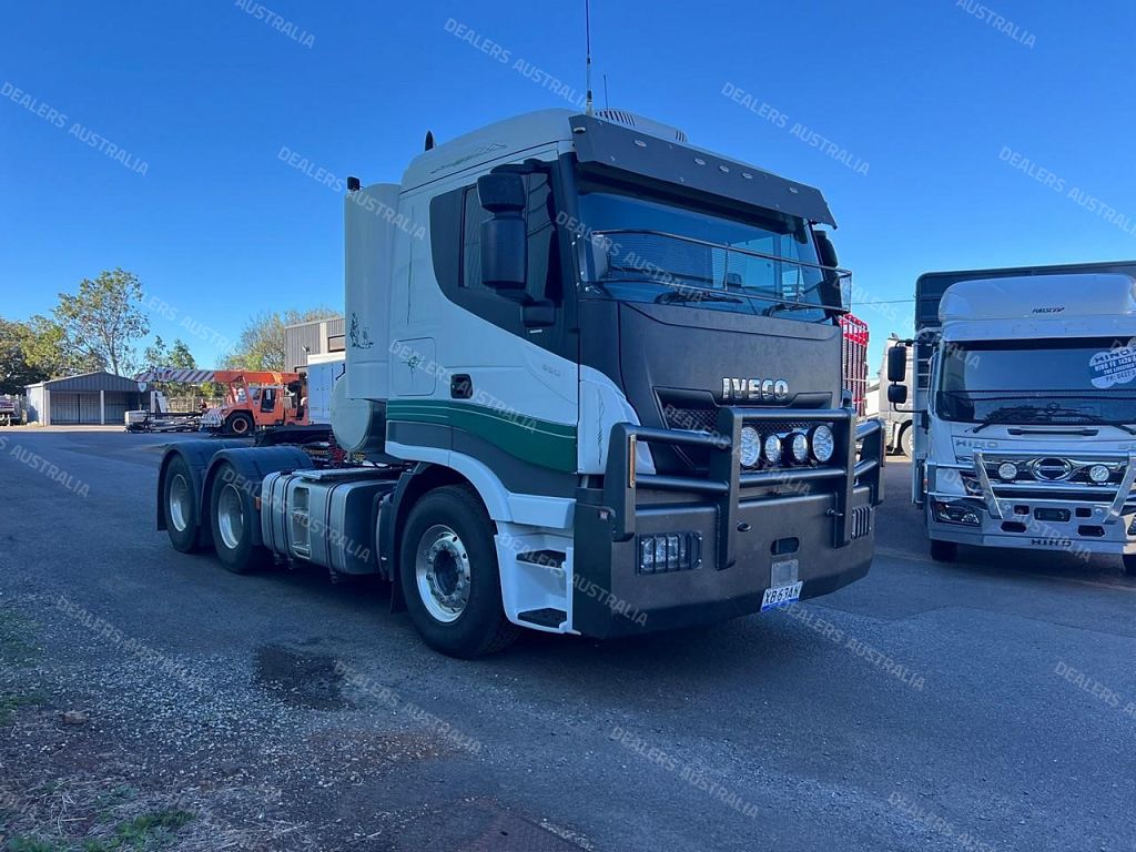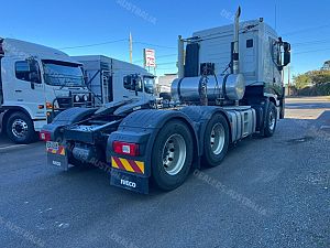 2022 IVECO STRALIS 550 PRIME MOVER, 13 LITRE 550 HP ENGINE, 16 SPD AMT TRANSMISSION, 6X4 ON AIRBAG SUSPENSION. Immaculate condition truck only travelled a GENIUNE 296,570 kms. This 1 owner truck is local owned and has travelled good highway miles, comes fully detailed and put through workshop. Extras include: Staunch bullbar, Driving Lights, UHF, Adjustable airbag suspension, Jost Turntable, Climate Aircon and cabin parking cooler, All the leading safety and comfort options included with these Iveco models. 1570 L Fuel Capacity.