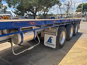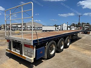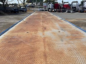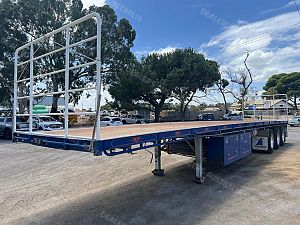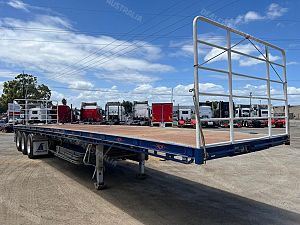 2018 Maxitrans tri axle 45' flat top open trailer,KHitch axles on air bag susp,10 stud alloy wheels,3 way container pins,Full set of gates with gate carrier,Ringfeder in rear with air and electric fittings,Straps in track,Fold down Road Train signs,Dunnage rack,Spare wheel carrier,Alloy Water tank,2 toolboxes on LHS,Airtec digital weight gauage,2" bolt in king pin,LED lights,Maxus landing trailer is in exellent condition and has had little use.