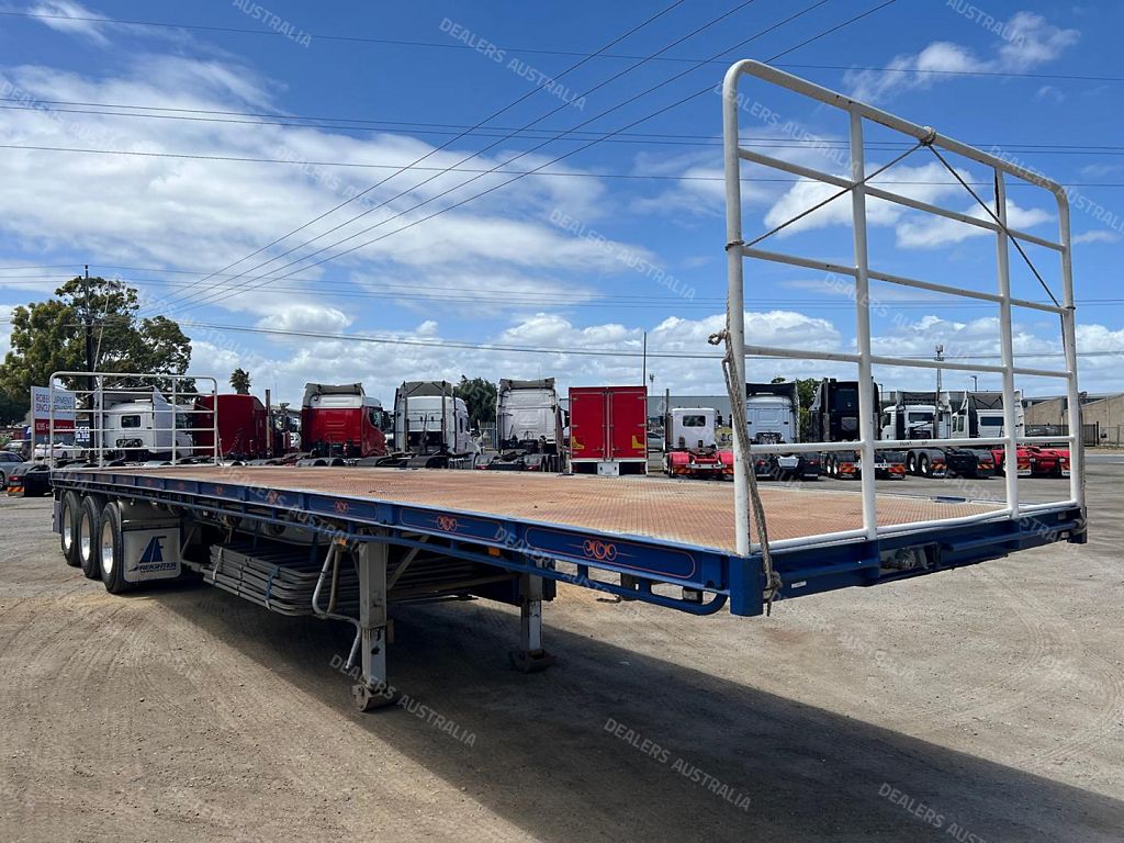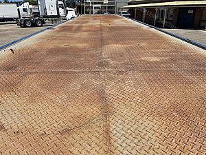 2018 Maxitrans tri axle 45' flat top open trailer,KHitch axles on air bag susp,10 stud alloy wheels,3 way container pins,Full set of gates with gate carrier,Ringfeder in rear with air and electric fittings,Straps in track,Fold down Road Train signs,Dunnage rack,Spare wheel carrier,Alloy Water tank,2 toolboxes on LHS,Airtec digital weight gauage,2" bolt in king pin,LED lights,Maxus landing trailer is in exellent condition and has had little use.