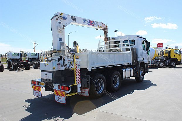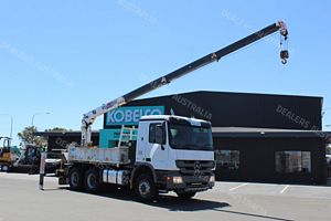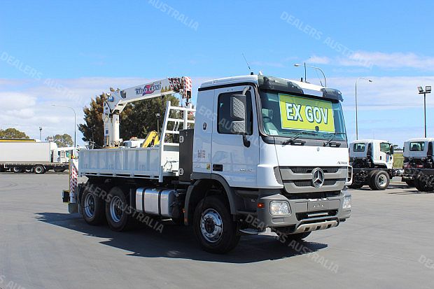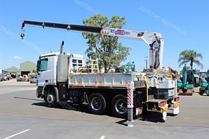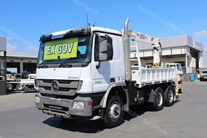 2010 Mercedes Benz Actros 2632 Tipper with Crane, Internal Body Measures 3.63m (L)x 560mm (H) x 2.33m (W). Fitted with Drop Down Sides, Tadano Cargo Crane with 3230Kg Lifting Capacity, Stabilizer Legs, PTO Operated, 3 x Small Toolboxes, 400L Fuel Tank, Tie Down Rails, Reverse Camera, Ladder Access, Tow Bar with 50mm Ball, Battery Isolator, Diverter Valve, Tyre Inflation System, CD Radio, Driver and Passenger ISRI Suspension Seat, Power Windows, Electric and Heated Mirrors, Cruise Control, UHF Radio, Automatic Transmission, 230HP Turbo Diesel Engine, Travelled 106,927kms!!
