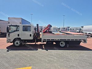 Just a lovely Isuzu NQR450 AMT 4.5 Ton Crew fitted with a 4.5m Steel Drop Side Tray, Towbar, Underbody Toolbox and featuring a Chassis Mounted Fassi F38 Crane, and will impress!