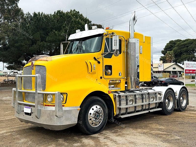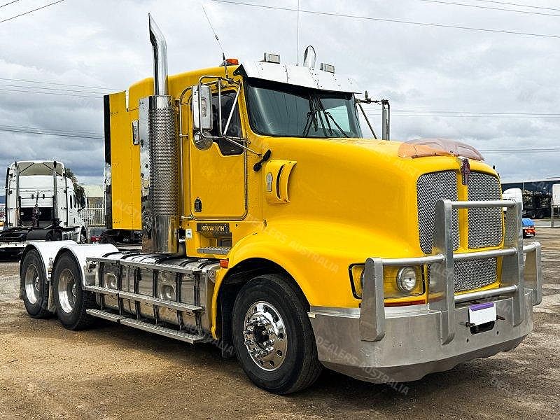 2008 Kenworth T608 IT Bunk 6x4 Prime Mover, Cat C15 Assert Engine, 18 Speed Road Ranger Transmission, Meritor RT46-160 Rear Axles @ 3.91 on Kenworth 8 Bag Air Glide Air Bag Suspension, Alloy Bull Bar with Tow Pin, Plastic Bug Off, Stainless Steel Drop Visor, Air Horns Mounted on Roof, Dual Exhaust Stacks, Integrated IT Bunk with Wings, 10 Stud Alloy Wheels, Square Tanks 2 X 650L & 1 X 360L, Chassis Deck Plate, Stainless Steel Drive Guards, Fixed Holland Grease Top QRTT, Diamond Stud Trim, Air Ride Drivers Seat, Wood Grain Dash, Turbo Timer, UHF, Radio AM/FM Player, Viesa Bunk Cooler, Hydraulics.