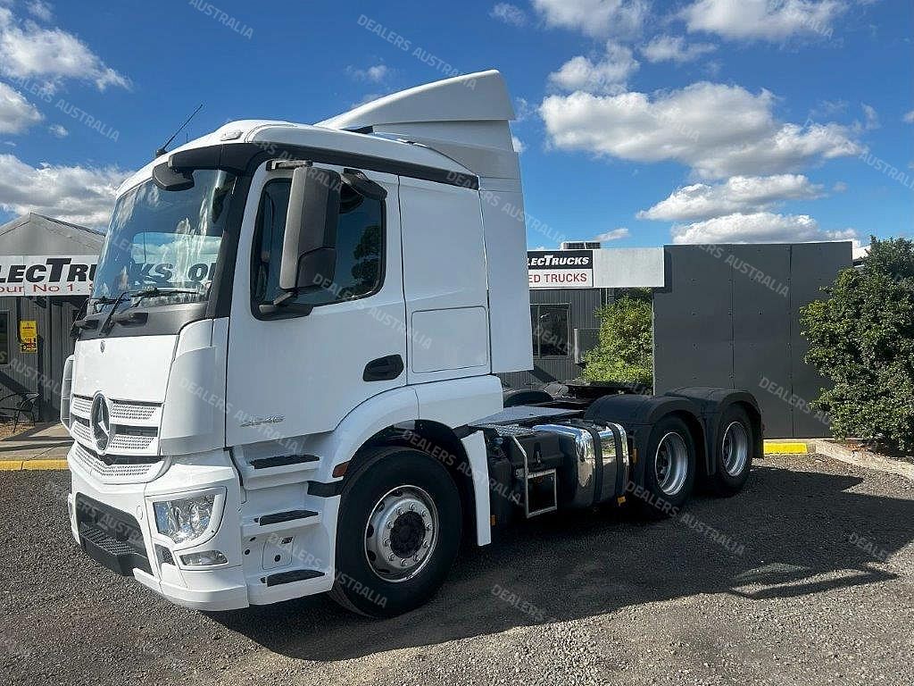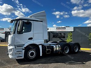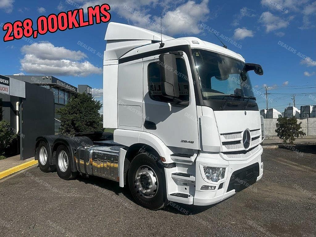 2019 Mercedes-Benz Actros 2646 prime mover, M-benz 460hp ** only 268,000klms , auto transmission, m-benz diffs, 62500 b-double rated, abs, integrated low roof sleeper cab, steel rims, ex fleet truck with service history, comes with 3 months or 50,000klms drive-line warranty !
