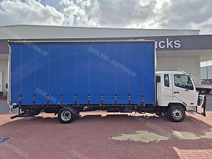 This 10 Pallet Fuso Fighter Tautliner, features the 6 Cylinder Powerplant coupled to a 6 Speed Syncro Transmission, Bullbar, Reverse Camera, 2500kg Tail Lift and features a Pallet Roller Floor. (Internal Height 2650mm)