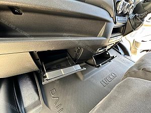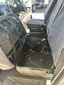 • Bench seat with two occupant capacity, under seat storage and fold down table