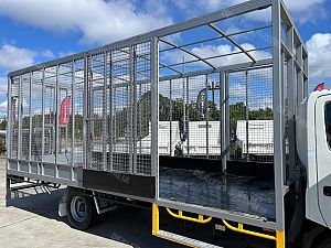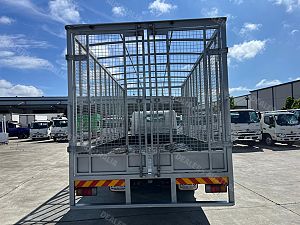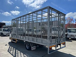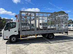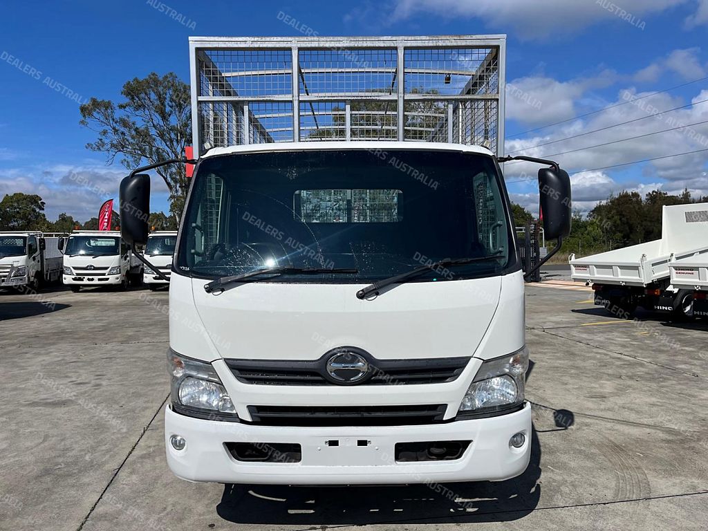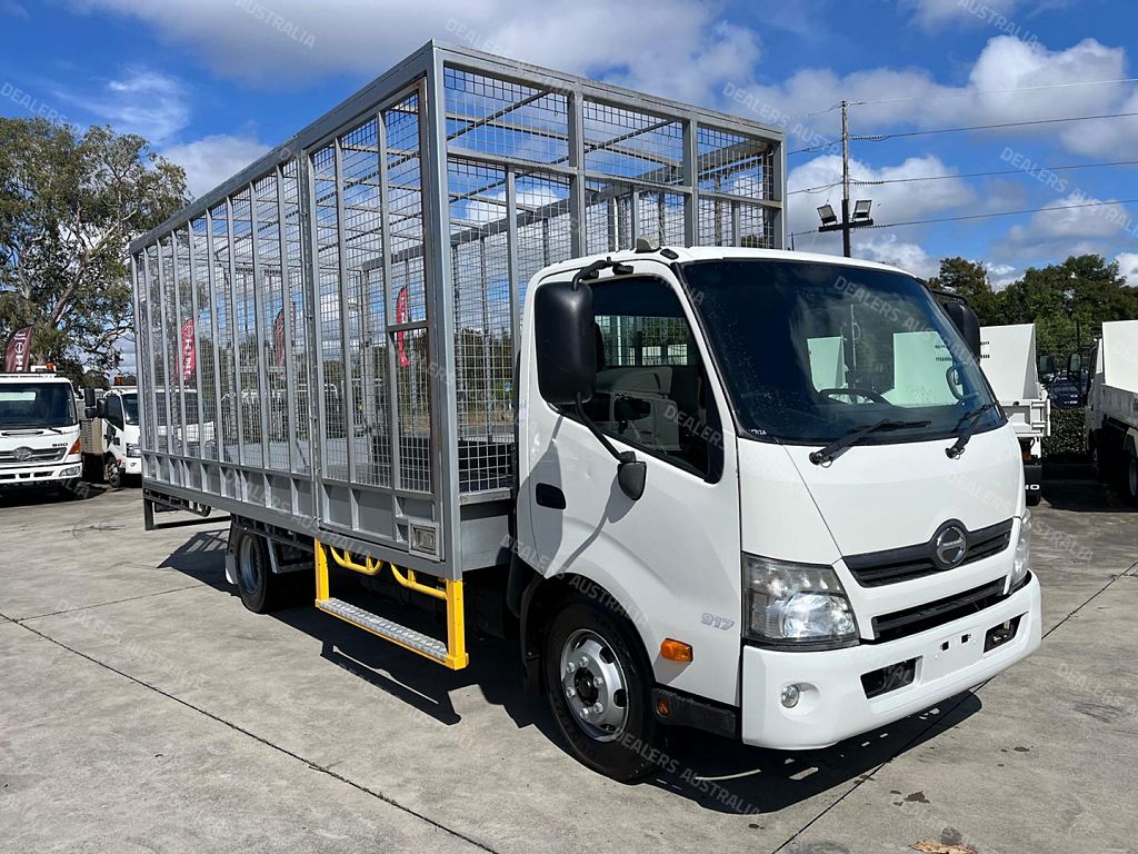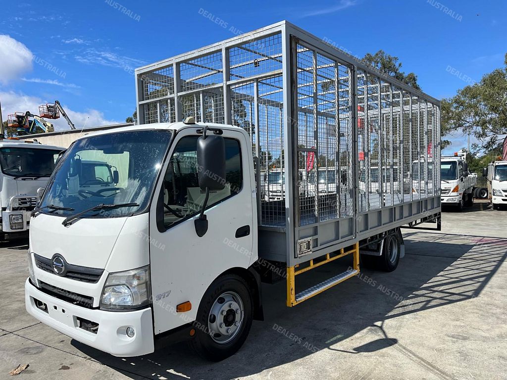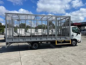 2014 Hino 300 series 917, 160Hp, 6 speed manual transmission, 5.9m steel tray with cage, 2 x side doors and rear barn doors, Ideal for carrying tyres.