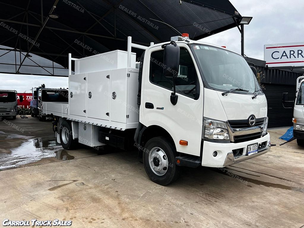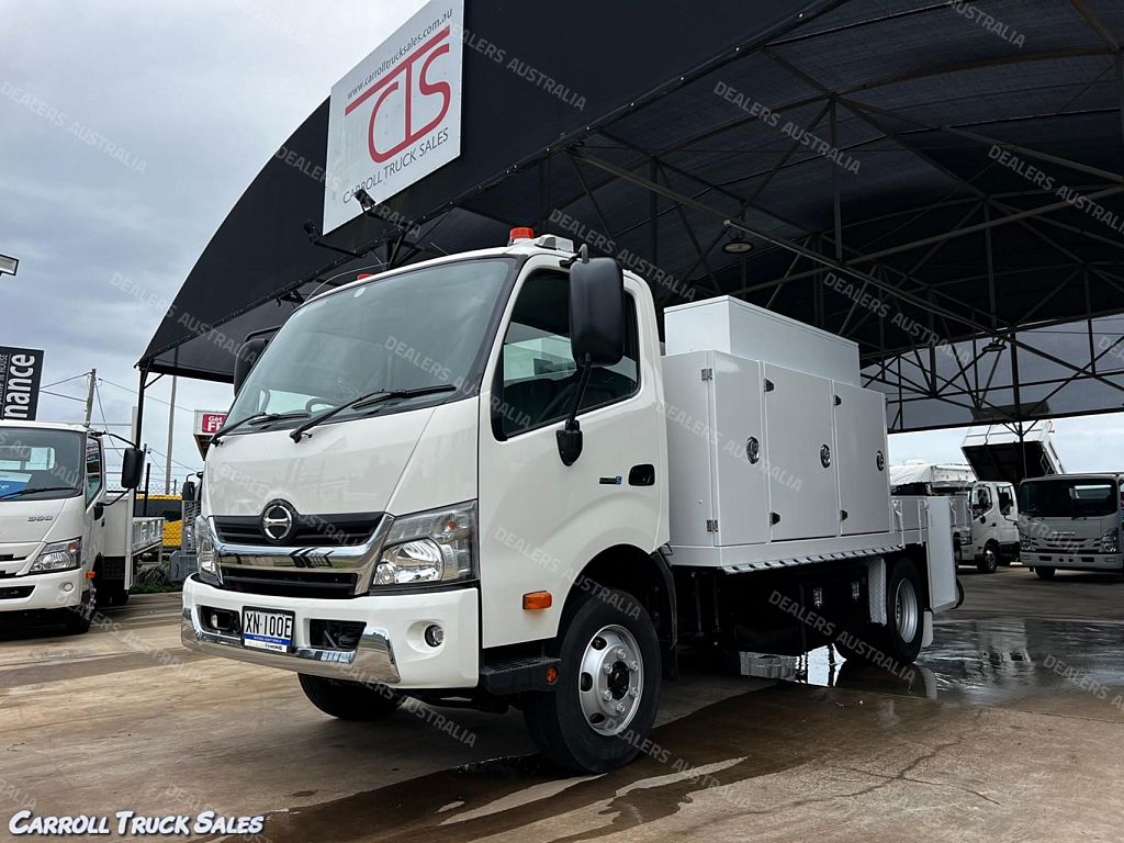 08/ 2019 HINO 300 SERIES 921 DUTRO, TURBO INTERCOOLED, AUTOMATIC TRANSMISSION, P/S A/C. IMMACULATE TRUCK FITTED WITH SERVICE BODY INCLUDING HIAB CRANE. THIS TRUCK IS FITTED WITH EXTRAS PLUS AND COMES FULLY DETAILED AND PUT THROUGH WORKSHOP.