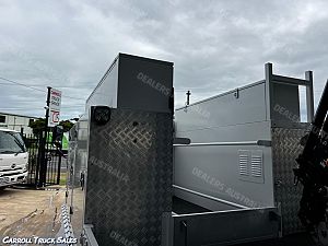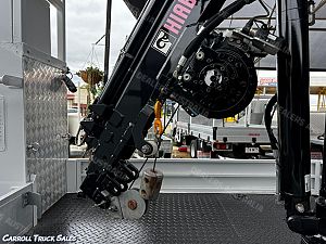 Extras include: Revolving lights, Work lights, Floor Mats, Seat Covers, Tool Box, Water Tank, Towbar- 50mm Ball/ Pintle hook including anderson plug, 12 pin Flat, large 7 pin round and ABS/ EBS, Reverse Camera, Hiab T-HIDU0 038 with winch- 2040Kgs @ 1.7m - 550 Kgs @ 6m.