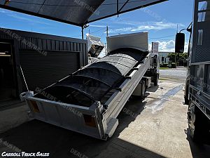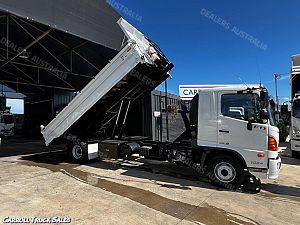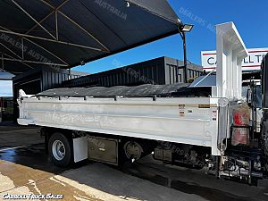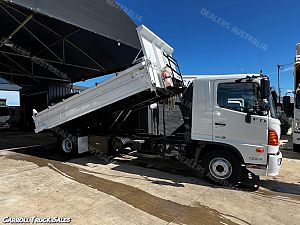 2011 HINO 500 SERIES FD 1024, TURBO INTERCOOLED 240HP, 6-SPEED MANUAL, P/S A/C. Very neat Ex-Govt truck fitted with tilting tipper body, Has been kept well serviced and maintained from new and drives great. Complete with some great extras and the tilting tipper body is a unique set up that would suit many Applicants. Extras Include: Canvas seat covers, Floormats, Reverse Camera, Airbag suspension dump, Remote for tilt tipper, Remote for winch, Manual roll back tarp, 2-way tailgate, towbar 3.5t, water tank, Toolboxes x 2 PLUS MORE! Truck will be fully detailed and put through workshop.