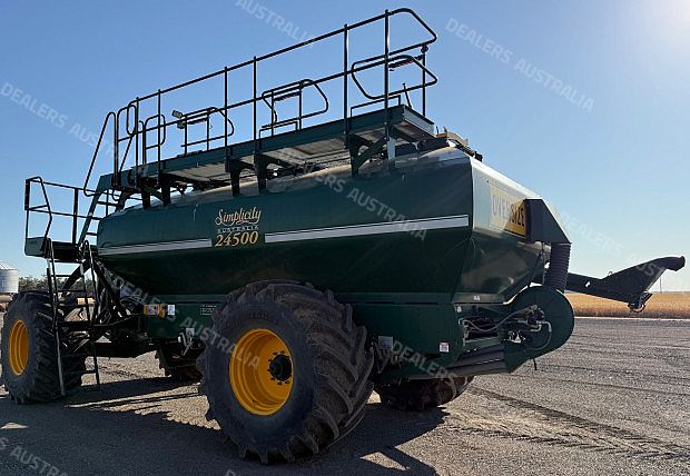 Simplicity 24500 TQ3 Air Seeder Cart, 2021 model, trailing, 24500 litre, 3 bin, quad cart, hydraulic meter drives with electric control, steerable front axle, 3 metre wheel centres, load/unload auger, bin level sensors, ISO connect w/ extra Simplcluty screen in cab, work lights, Excel Stubblewarrior 24m for sale separately, good condition, near Goondiwindi QLD, includes GST