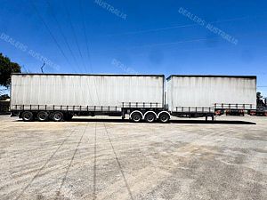 2020 Maxitrans ST3 Drop Deck Tri-Axle B-double Curtain Side Combination, Maxus Axles on Air Bag Suspension, Hanging Gates, Mezz Decks in B Trailer, Nose Cones, Tie Rails, Maxus Landing Legs, Plastic Circle Guards, Under Body Tool Boxes, Spare Wheel Carrier, 10 Stud Wheels, Under Body Water Tank, Fixed Turn Table, Barn Doors to Rear of B-Trailer, Ring Feder Plate in Rear of B-Trailer,