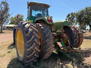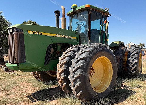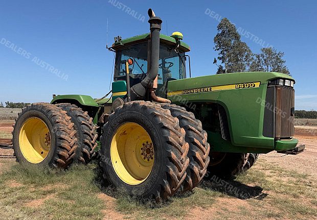 John Deere 9400 Tractor, 4 wheel drive, 425 horsepower, 12021 hours, dual 520/85R42 tyres 40% rubber, 24 speed powersync transmission (recently rebuilt), 4 remotes, front and rear wheel weights, rear machine weight pack, Greenstar ready, Avaialble for extra - JD receiver and screen, good condition, near Talwood QLD, includes GST