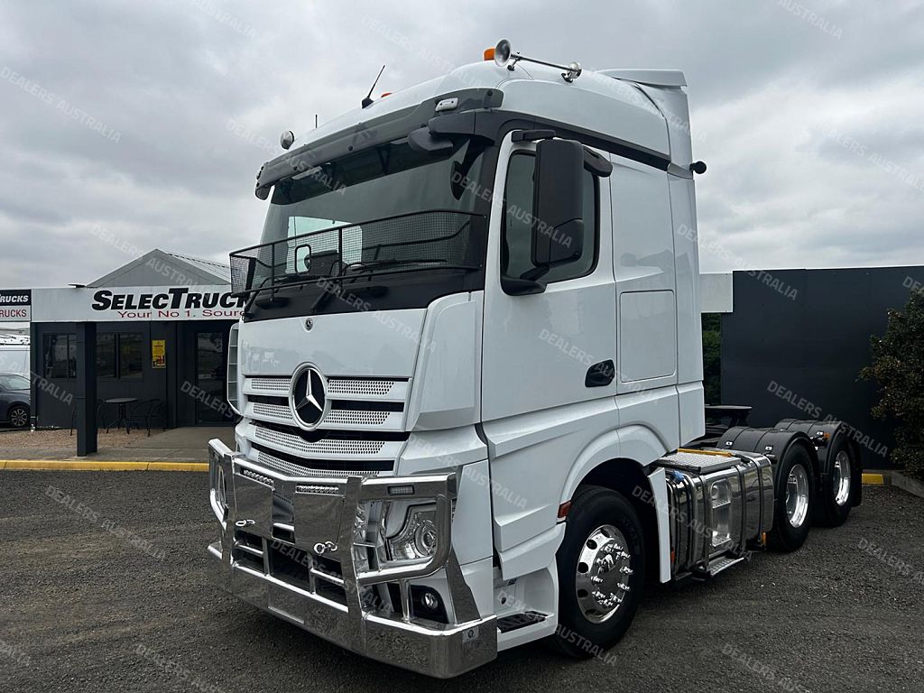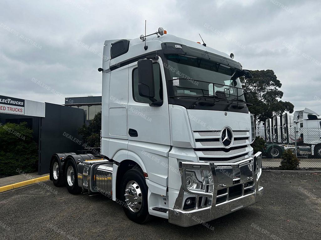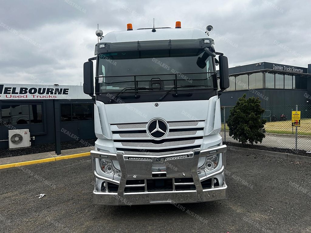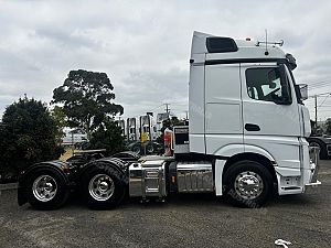 2021 Mercedes-benz Actros 2658 prime mover, m-benz 580hp engine, auto transmission, airbag suspension, m-benz diffs, abs, 106 tonne rated, integrated high roof sleeper, ice pack, alloy bullbar, alloy rims, ex one owner fleet truck with full service history, comes with vic RWC & 3 months or 50,000klms drive-line warranty !