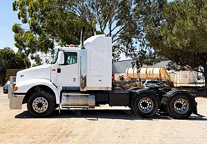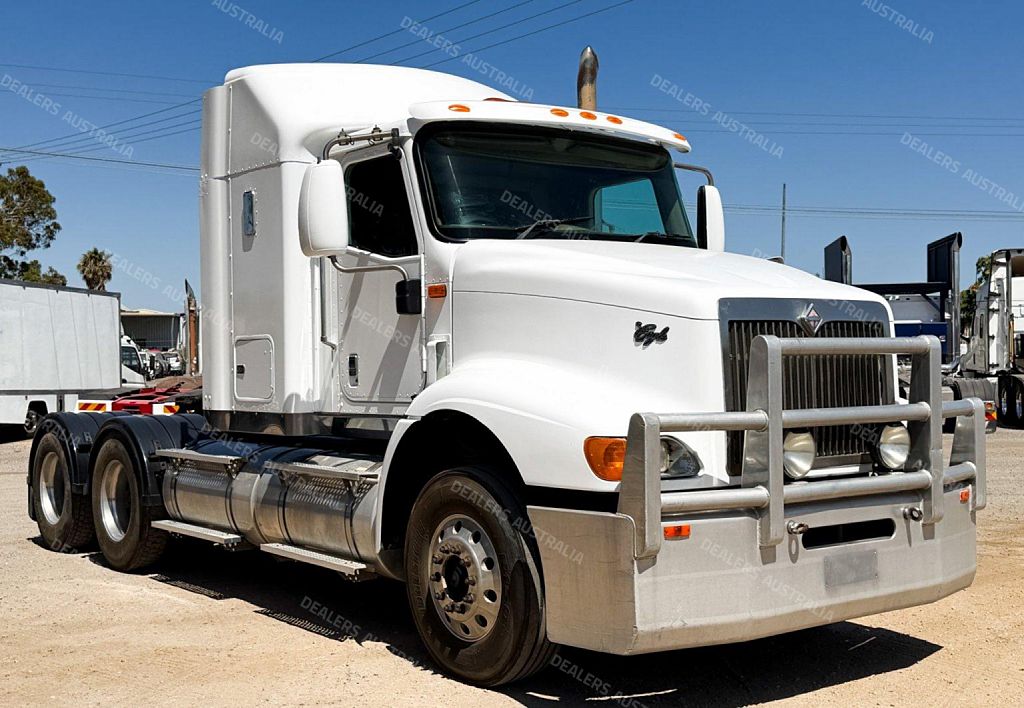 2007 International Eagle 9200i 6x4 Prime Mover, Cummins ISX Engine @ 500Hp, 18 Speed Road Ranger Transmission, Meritor RT46-160 Rear Axles with Cross Lock to Rear Axle @ 4.3 on Henderickson HAS460 Air Bag Suspension, Alloy Bull Bar with Psot Lights, Allow 10 Stud Wheels, Round Tanks, Sun Visor, Plastic Drive Guards, Single Exhaust Stack, Chassis Mounted Tool Box, Fixed QRTT, Air Ride Drivers Seat, Wood Grain Dash,