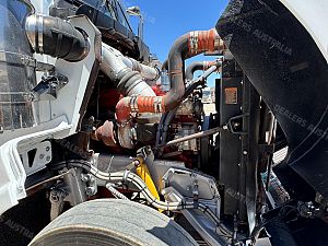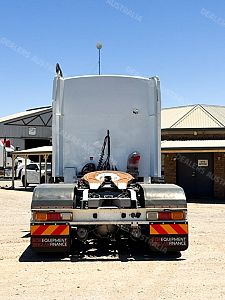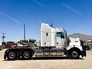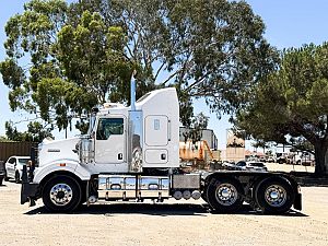 2014 Kenworth T409 SAR 6x4 Prime Mover, Cummins ISX E5 Engine @ 500Hp, 18 Speed Road Ranger Transmission, Meritor RT46-160 Rear Axles on Kenworth 8 Bag Air Bag Suspension, Bull Bar with Tow Pin and LED Spot Lights, 10 Stud Wheels, Plastic Bug Off, Stainless Steel Sun Visor, Square Tanks, Red Dot, Integrated Sleeper Bunk, Single Exhaust, Chassis Deck Plate, Fixed QRTT, Rubber Pul, Over Guards, Yard Dolly Pull to Rear of Chassis, Battery Isolator, ISRI Air Ride Drivers Seat, Maroon Diamond Stud Trim, Wood Grain Dash, Turbo Timer, IcePack 2000,