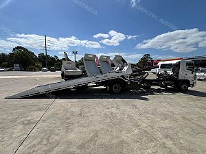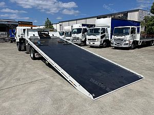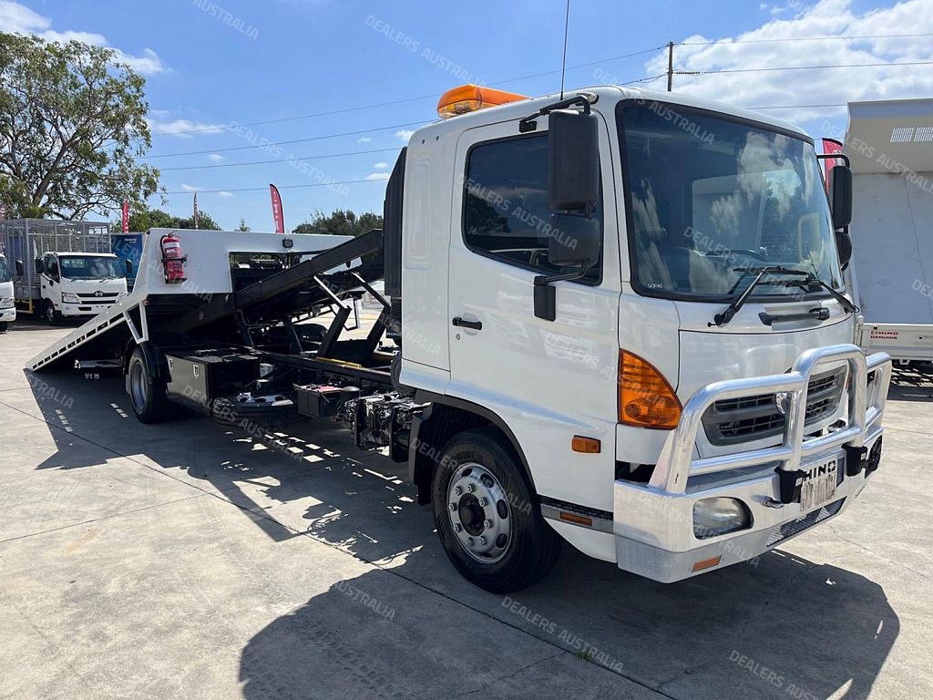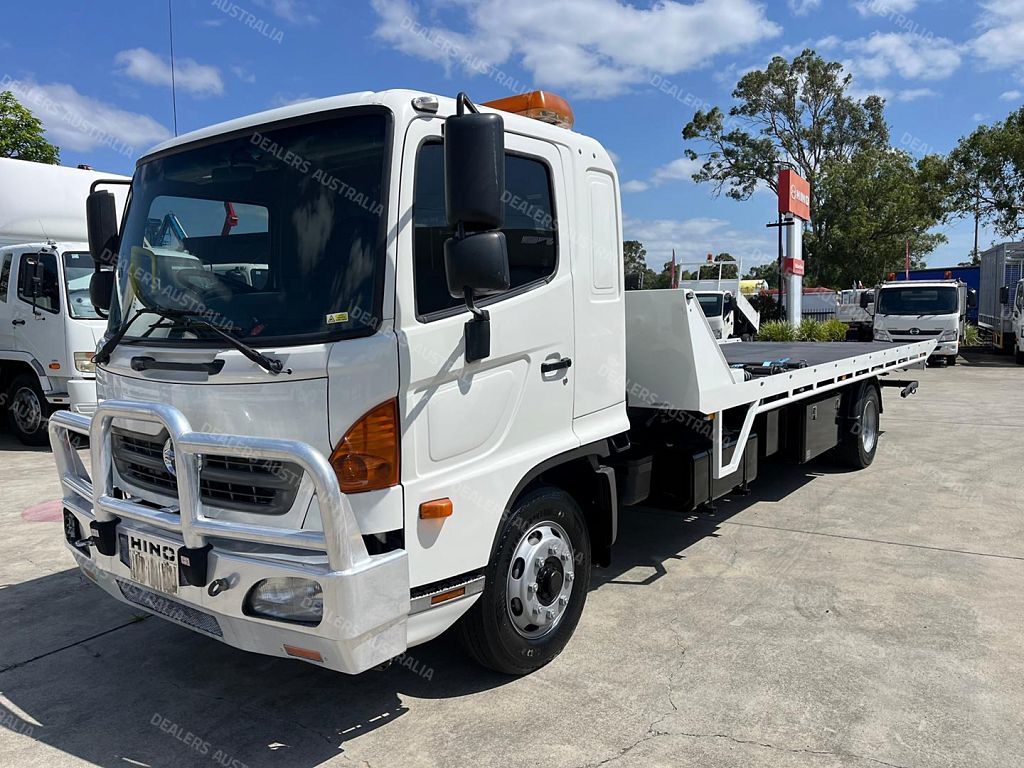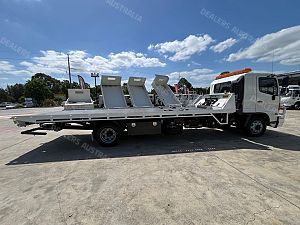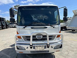 2015 Hino FE1426, 260Hp, 6 Speed manual transmission, Ekebol tilt slide with cradle, Winch, Container pins and pusher, Remote body, Alloy bullbar, Safety beacon, Removable tow hitch, Chains, Straps. 6800 Long deck.
