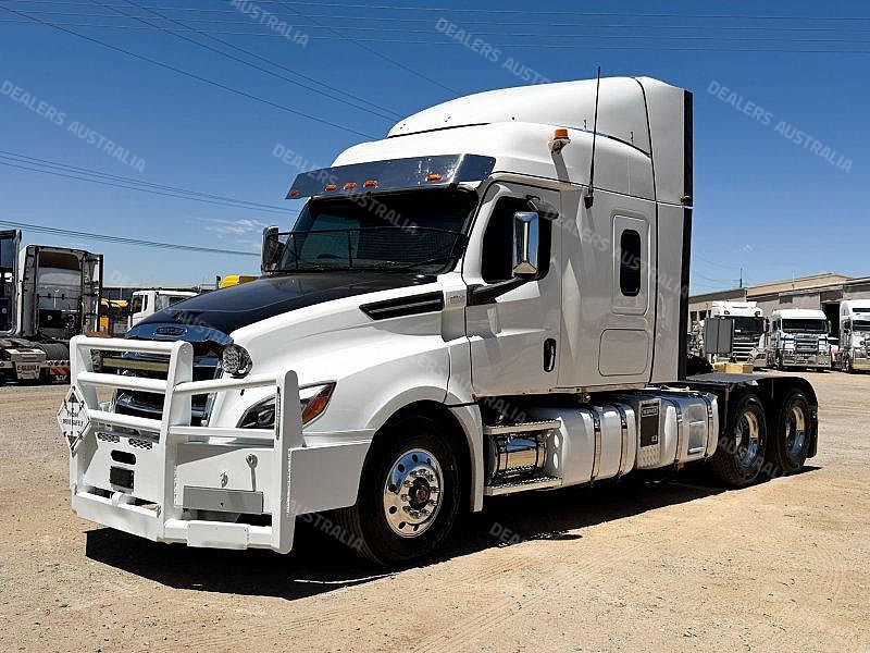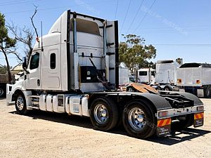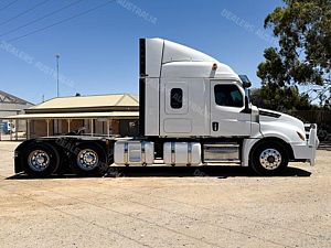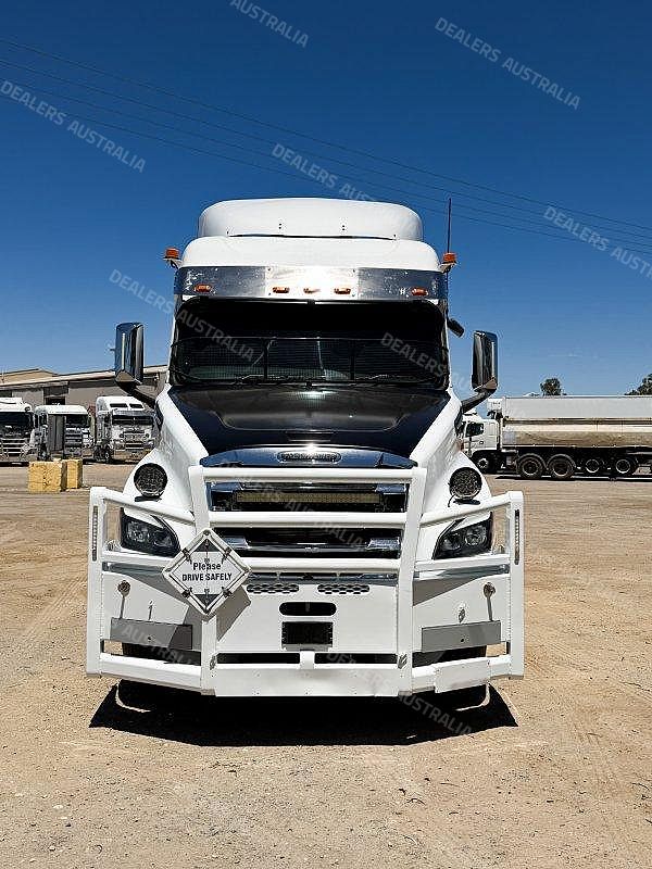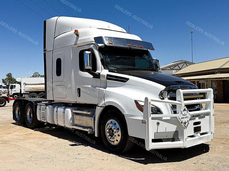 2021 Freightliner Cascadia 126 6x4 Prime Mover, Detroit DD16 Engine @ 600Hp, DT12-2050 12 Speed AMT Transmission (2 Pedal), Dana D54-190P Rear Axles @ 4.1 with Cross Locks to Both Axles on Neway Air Bag Suspension, Alloy Bull Bar with LED Spot Lights/Road Train Signs and Tow Pin, Stainless Steel Drop Visor, Aero Kit with Wings, 10 Stud Alloy Wheels, 4 x Square Diesel Tanks, Ice Pack, Twin Exhaust Stacks Behind Cab, Tool Box and Hand Wash Facility Behind Cab, Chassis Deck Plate, Rubber Pull Over Guards, Fixed K-Hitch QRTT, Yard Dolly Pull to Rear Cross Member, Battery Isolator, Air Ride Drivers Seat, Microwave, TV Mount Only, Single Bed,