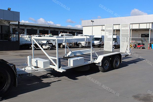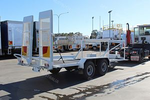 2005 Combo PT 2L Plant Trailer. Body Measures 5.99m (L) x 1.8m (W). Fitted with Hydraulic Ramps, Small Toolbox, Bucket Rack, Wind Down Leg, Tie Down Points, Ring Feeder Attachment
