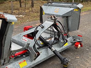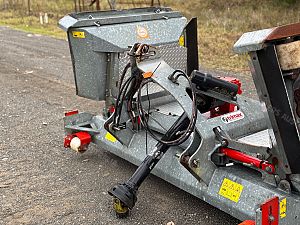 -PTO shaft driven and connects to a standard 3pt linkage and aux hydraulic connections, a 50hp plus tractor is needed to power this unit.
