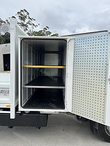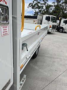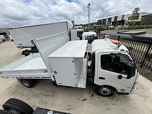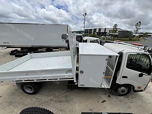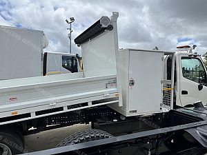 This is a brand-new build by Northeast Engineering and ready to roll. Fitted with Service body, Tipper and full 2400 storage cabinets as well as signage storage in front. .