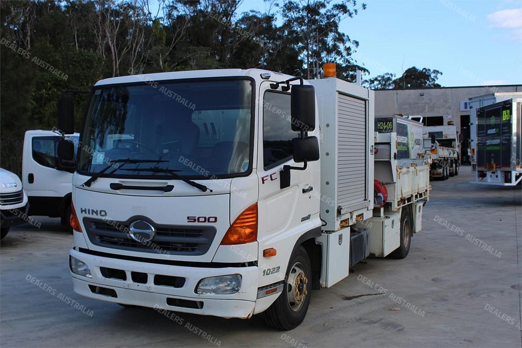 The Hino FC 1022 has a 6 speed Manual Transmission, Air-conditioning, reverse camera, suspension driver's seat, 7 large tool / storage boxes, tow bar, retractable tarp and more.