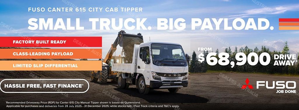 Drive away with a factory built ready FUSO Canter tipper, with class-leading payload and superior traction.