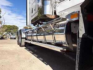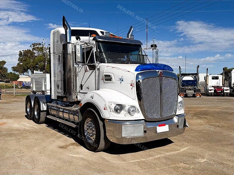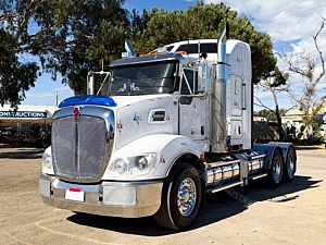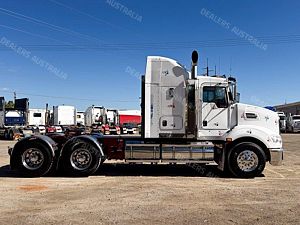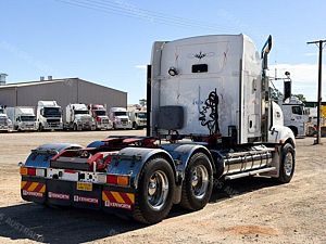2014 Kenworth T409 6X4 Prime Mover. Cummins ISX E5 @ 550HP, 18 Speed Road Ranger, dana rear axles on Kenworth 8 bag air suspension, polished alloy bar, super singles to steers, stainless sun visor, blue bug deflector, mesh stone guard, load lights, polished alloy tanks, integrated sleeper, VIESA bunk cooler, auto greaser, battery isolator, tipper hydraulics, fire extinguisher, chassis walk plates, Jost greaseless turntable, stainless drive guards, LED taillights, quad KW mudflaps.