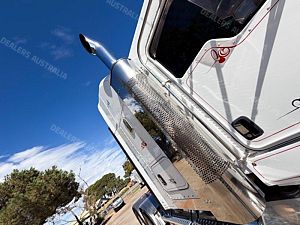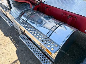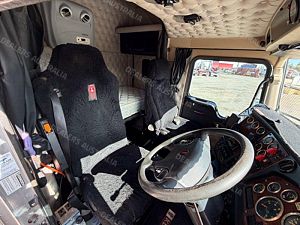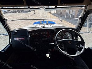 cream diamond stich interior, Twin UHF radios, KW Smart wheel, in cab tipper controls, under bunk fridge slide, turbo timer, interaxle lock.