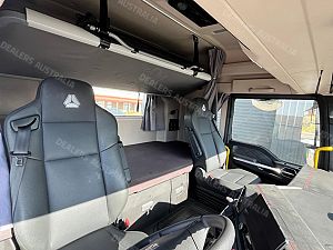 The spacious sleeper cab with dual beds offers practical comfort for extended trips, making this unit well suited to fleet operators and owner-drivers looking for a modern, high-spec linehaul truck.