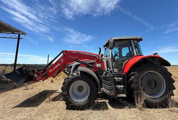 Massey Ferguson 7S.155 Tractor, purchased 2025 (2023 model), 155 horsepower, 230 hours, cab suspension, solid front axle, Massey Ferguson FL.4323 Front End Loader, GP bucket, Euro hitch with adapter to suit other attachments, balance of warranty (2 year/2000 hours), excellent condition, near Ashford NSW, includes GST