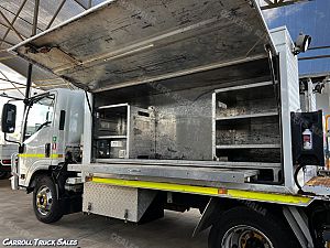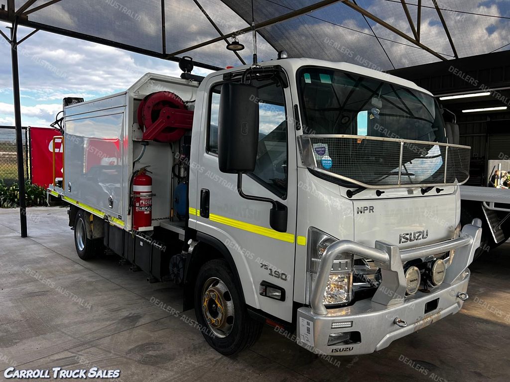 01/ 2020 ISUZU NPR 75/ 190, TURBO INTERCOOLED 190 HP, 6-SPEED MANUAL, P/S A/C. Immaculate set up ex-fleet service truck, Presents in excellent condition and drives great. Expenses haven't been spared on this one and is fitted with extras PLUS Including: Stone Guard, Floor mats, UHF Radio, Electric Brakes, Chrome alloy bulbar, Driving Lights, Towbar, Isolator Switch, Mine bar, 4x Work lights, Hiab Crane T-HIDUO 023- 1600 Kgs @ 1.5m, 520 Kgs @ 4.5m, Stabilizer Legs, Rear Vice, 2x Big above body Storage boxes, Lights, peerless Diesel Air compressor, Air Hose reel, Inverter with external 240 sockets PLUS MORE!!!