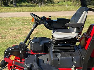 -The deck pivots and floats to the ground counter, to eliminate scalping because of its fully rollered design. The deck is easily raised and lowered electronically.