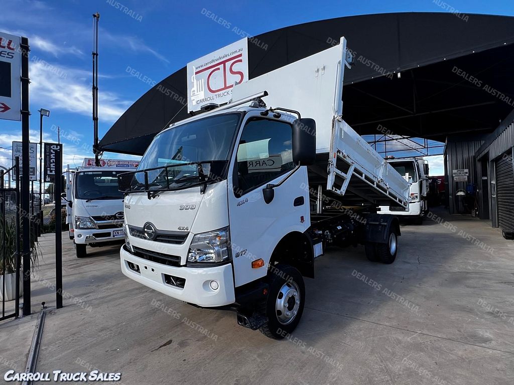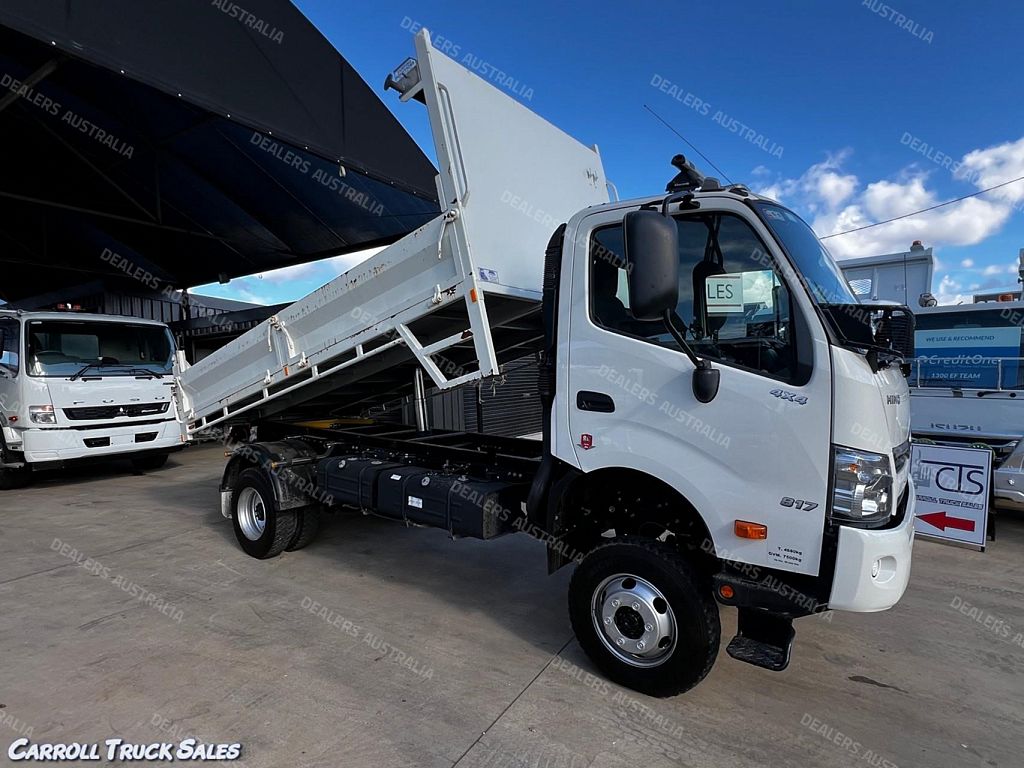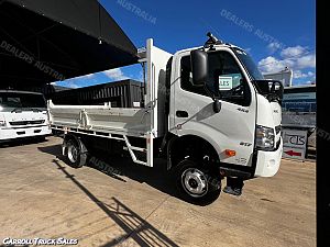 03/ 2022 HINO 300 SERIES 817 4X4, TURBO INTERCOOLED, 6-SPEED MANUAL, P/S A/C. This ex-govt 4WD Truck presents in immaculate condition and has only travelled a GENUINE 25,396 Kms. Fitted with Drop-side tipper body along with many extras including: Isolator Switch, 4x Drop-sides, 2-way tailgate, Towbar, Twin Fuel tanks, Revolving Lights, Floor mats, Stone Guard, PTO PLUS MORE!!