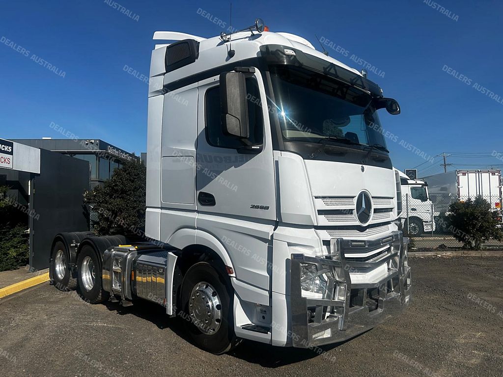 2021 Mercedes-benz Actros 2658 prime mover, M-benz 580hp, ** 594,000klms ** auto transmission, airbag suspension, m-benz diffs, 90 tonne rated,abs, integrated sleeper cab, alloy rims, alloy wheels, comes with full mercedes service history RWC & 3 months or 50,000klms drive-line warranty ! ( file pics )