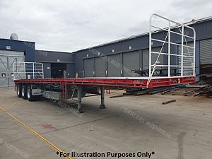 10/2014 SOUTHERN CROSS 45' TRI AXLE FLAT TOP OPEN TRAILER,KHITCH AXLES ON AIR BAG SUSP,10 STUD STEEL WHEELS,3 WAY CONTAINER PINS,RINGFEDER IN REAR WITH AIR AND ELECTRIC FITTINGS,FRONT AND REAR RACKS,SPARE WHEEL CARRIER,WATER TANK,2 TOOLBOXES,BEARER BOX,REVOLVING BEACONS,LED LIGHTS.
