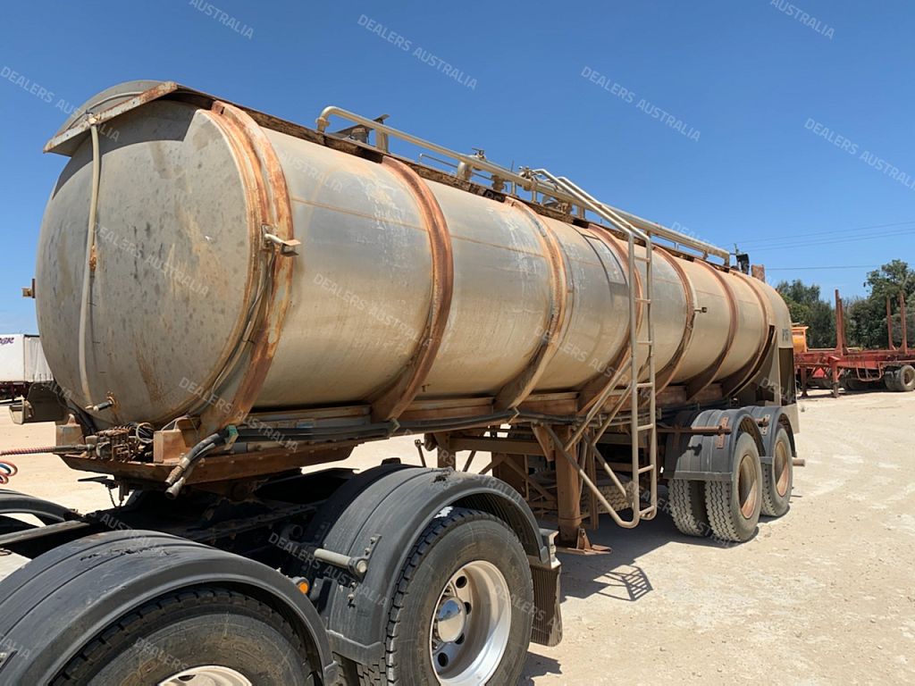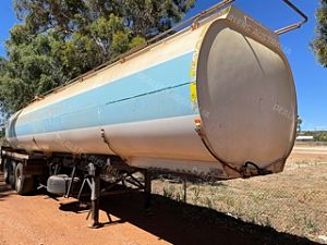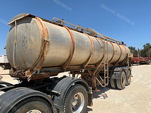Tanker Trailer. Tieman. Stainless steel. 16000L. Bogie. Hydraulic driven water pump. Dribble bar. L and R middle sprayers. Springs. 1988.